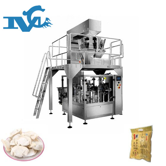 速凍食品包裝機包裝范圍:速凍水餃、冷凍蔬菜、肉丸、蔬果粒、冰塊等顆粒包裝機。可分為速凍食品給袋式包裝機和速凍食品卷膜制袋包裝機兩種如下圖: