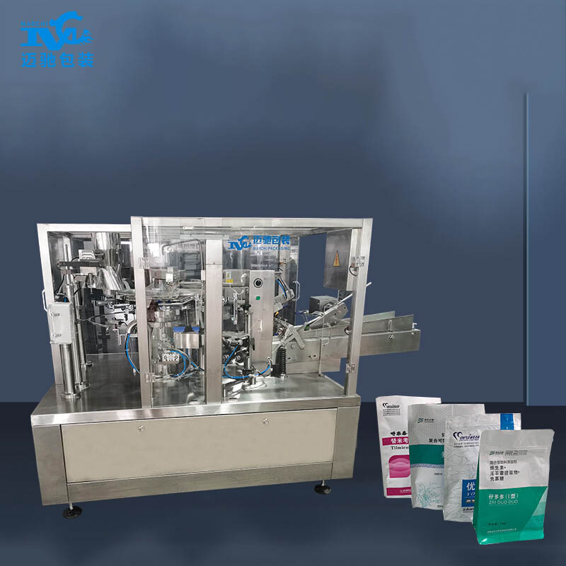 邁馳專業生產八工位給袋式包裝機,能夠同時完成給袋、開袋、計量、充填、封口、冷封、切斷和輸出等八個功能。其精準計量和智能化控制...